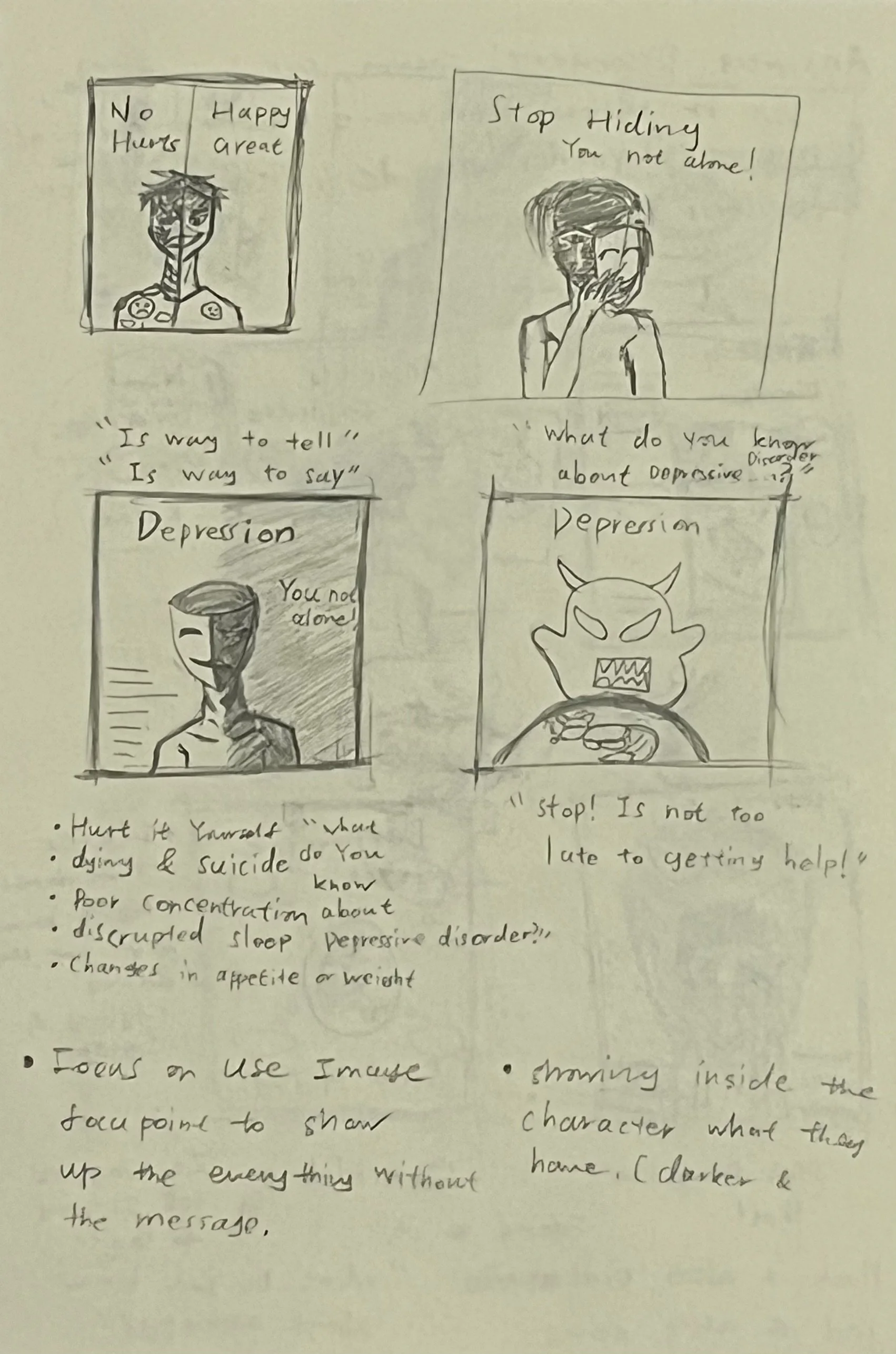 This poster I want potential patients to be aware of whether they have depressive tendencies or whether they already know they have depressive symptoms but are afraid to talk to anyone about their condition.